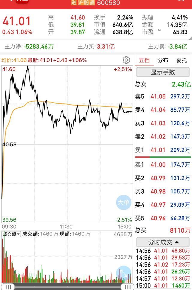 2026年3月4日,卧龙电驱(600580)开盘报39.87元,较前一交易日收盘价40.58元低开1.75%。早盘阶段,股价快速拉升,最高触及41.60元,随后震荡回落,午后在40.8元附近横盘整理,最终收报41.01元,全日上涨0.43元,涨幅1.06%。全天振幅4.41%,成交额14.35亿元,换手率2.24%,处于相对温和水平。