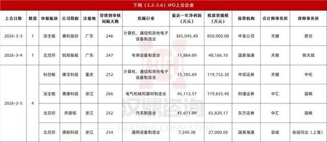 下周IPO上会企业一览