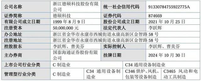 据招股书信息,德硕科技是一家主要从事电锤、电镐等手持式电动工具及相关配件的研发、生产和销售的高新技术企业,主要客户包括ADEO、Kingfisher Group、LIDL等全球头部连锁建材超市集团以及苏州盈维来及其关联主体、宝时得集团、公牛工具、得力科技等境内外知名的工具厂商。公司是全球排名前列的电锤、电镐生产商。