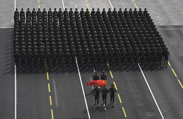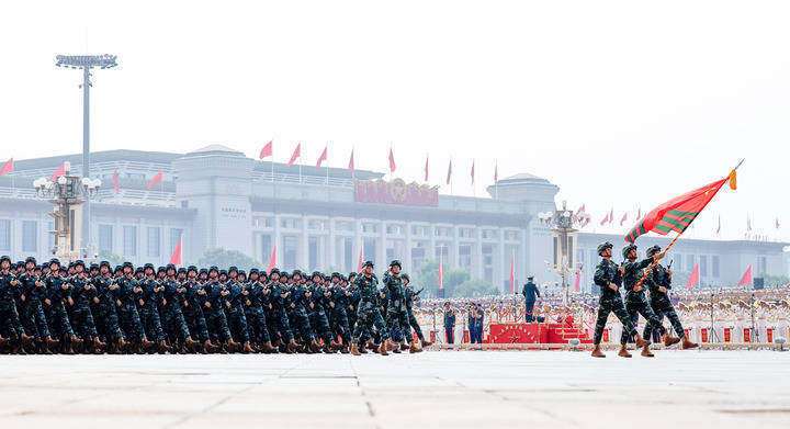 9月3日,纪念中国人民抗日战争暨世界反法西斯战争胜利80周年大会在北京隆重举行。这是武警部队方队接受检阅。新华社记者 张铖 摄哨位上挺拔的军姿,就是武警官兵的忠诚誓言。