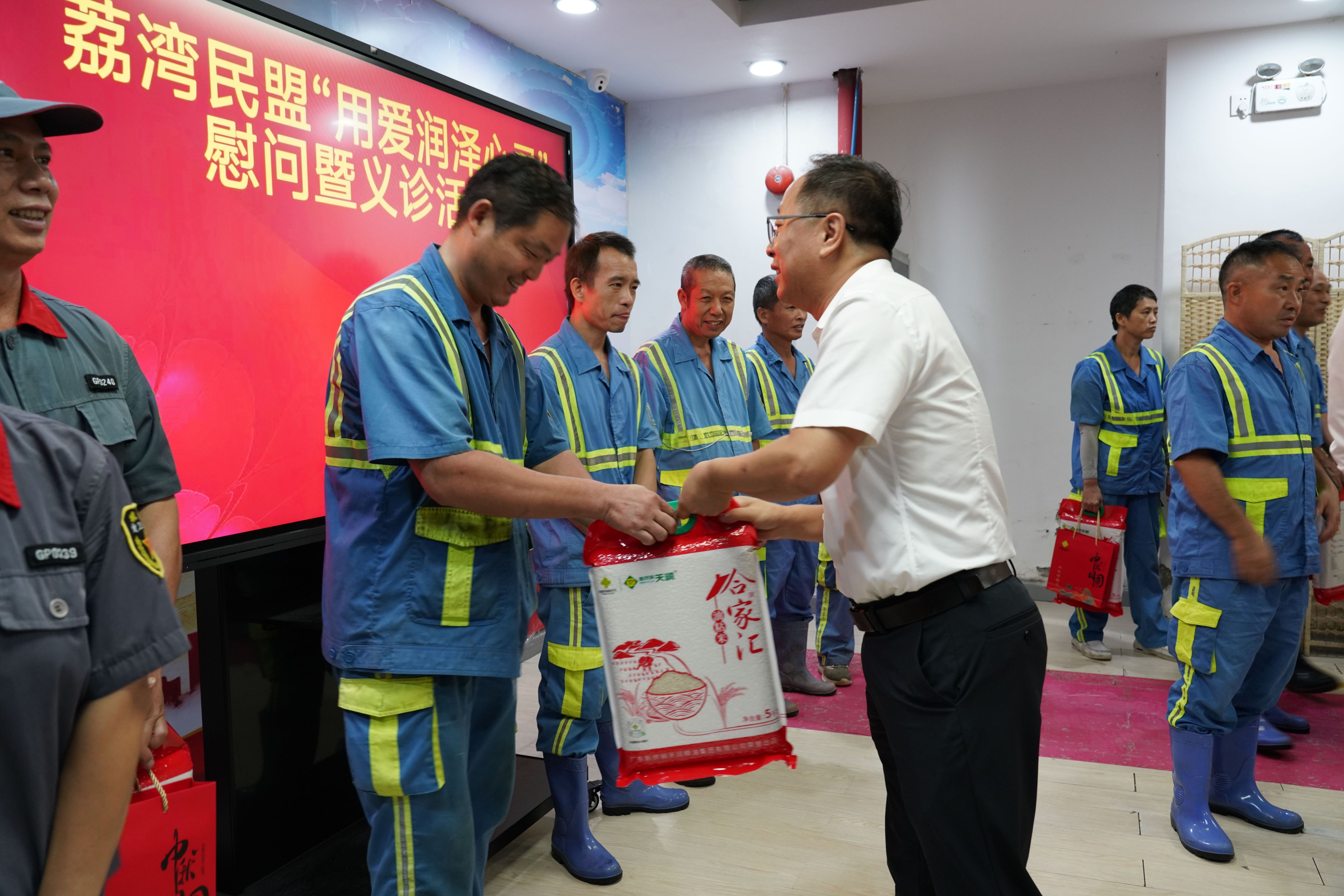 现场慰问环节,民盟荔湾区基层委员会向85名一线环卫工人代表赠送中秋慰问品,对他们为城市环境整洁和公共卫生安全作出的贡献致以崇高敬意。环卫工人代表表示,将继续立足岗位,以更加饱满的精神状态投入城市保洁与疫情防控工作。