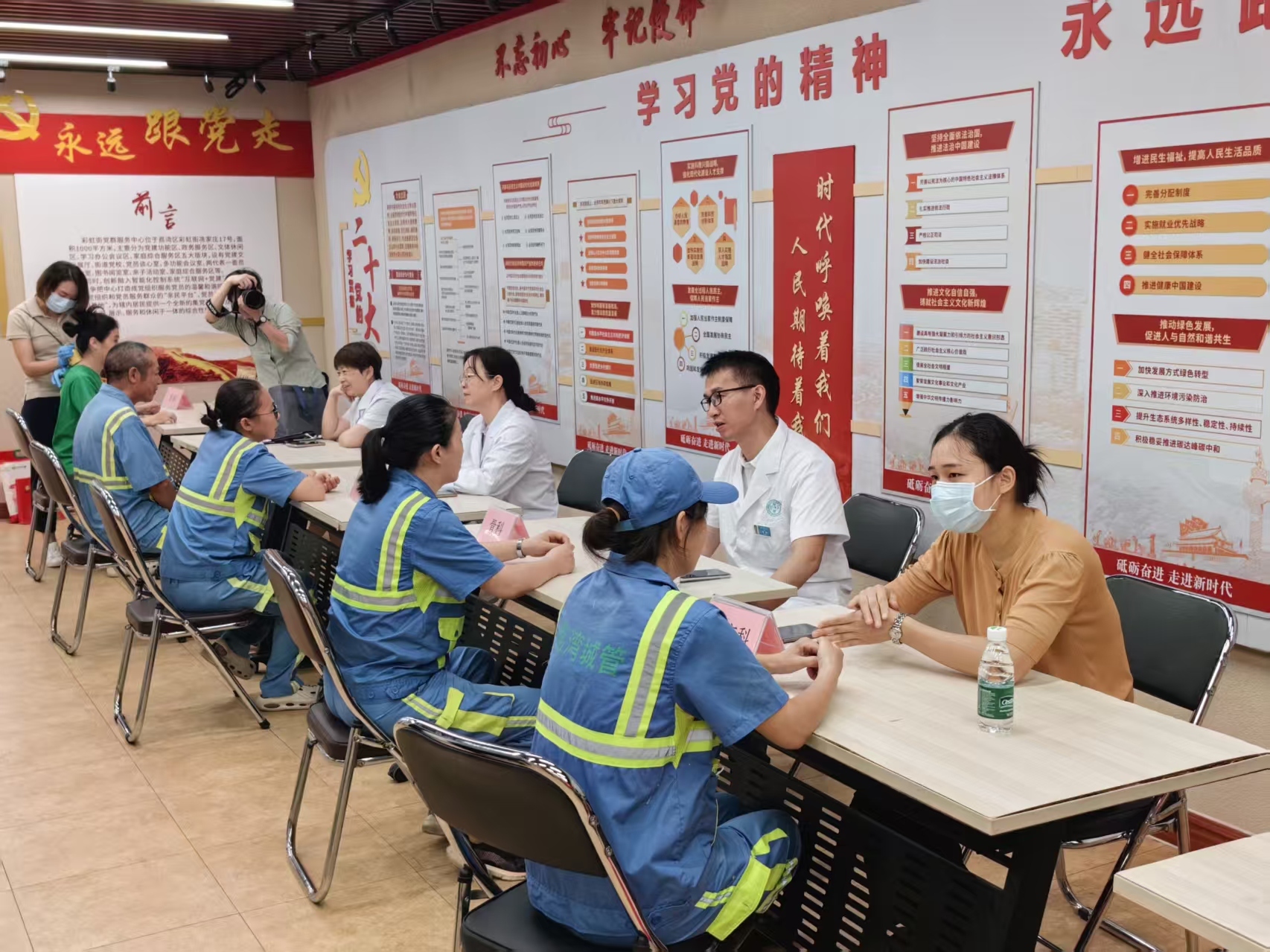 本次活动面向今夏以来坚守“两热”防控一线的环卫工人、消毒站职工代表开展节日慰问,并同步为辖区居民提供义诊服务。