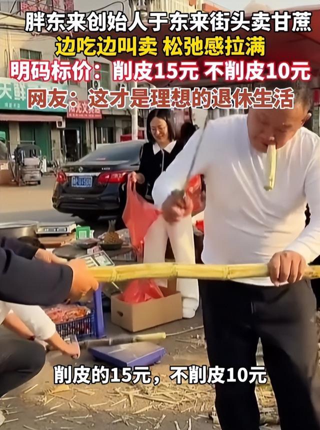 亲自削甘蔗的动作也是麻利又熟练,一看就是干实事的人。